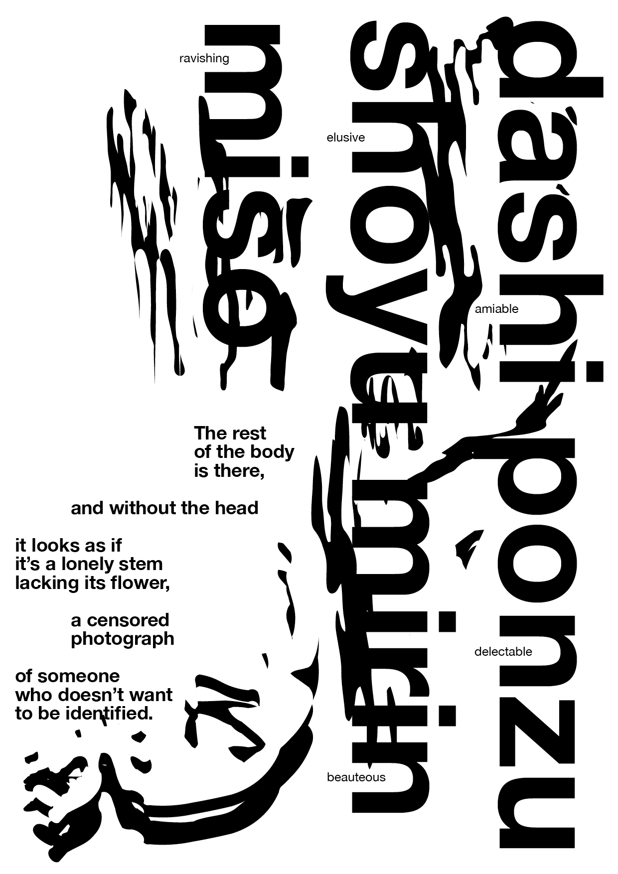 “... The rest of the body is there, and without the head it looks as if it’s a lonely stem lacking its flower, a censored photograph of someone who doesn’t want to be identified...”